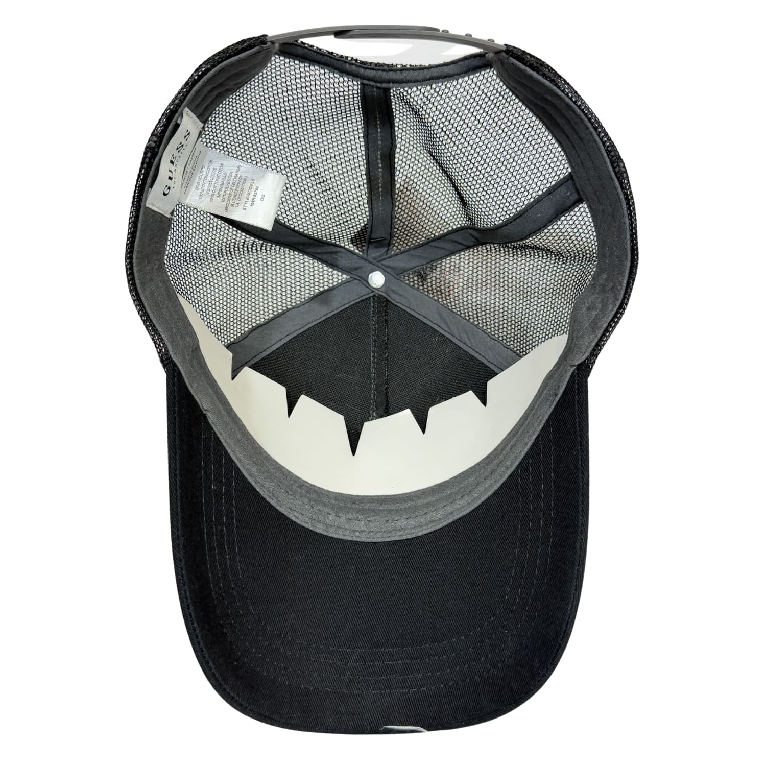 Gorro Guess con malla y diseño multilogo, estilo urbano y cómodo, con ventilación trasera y logo metálico frontal. Ideal para un look casual con estilo.