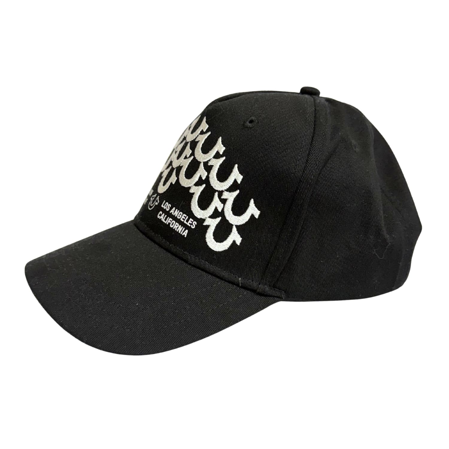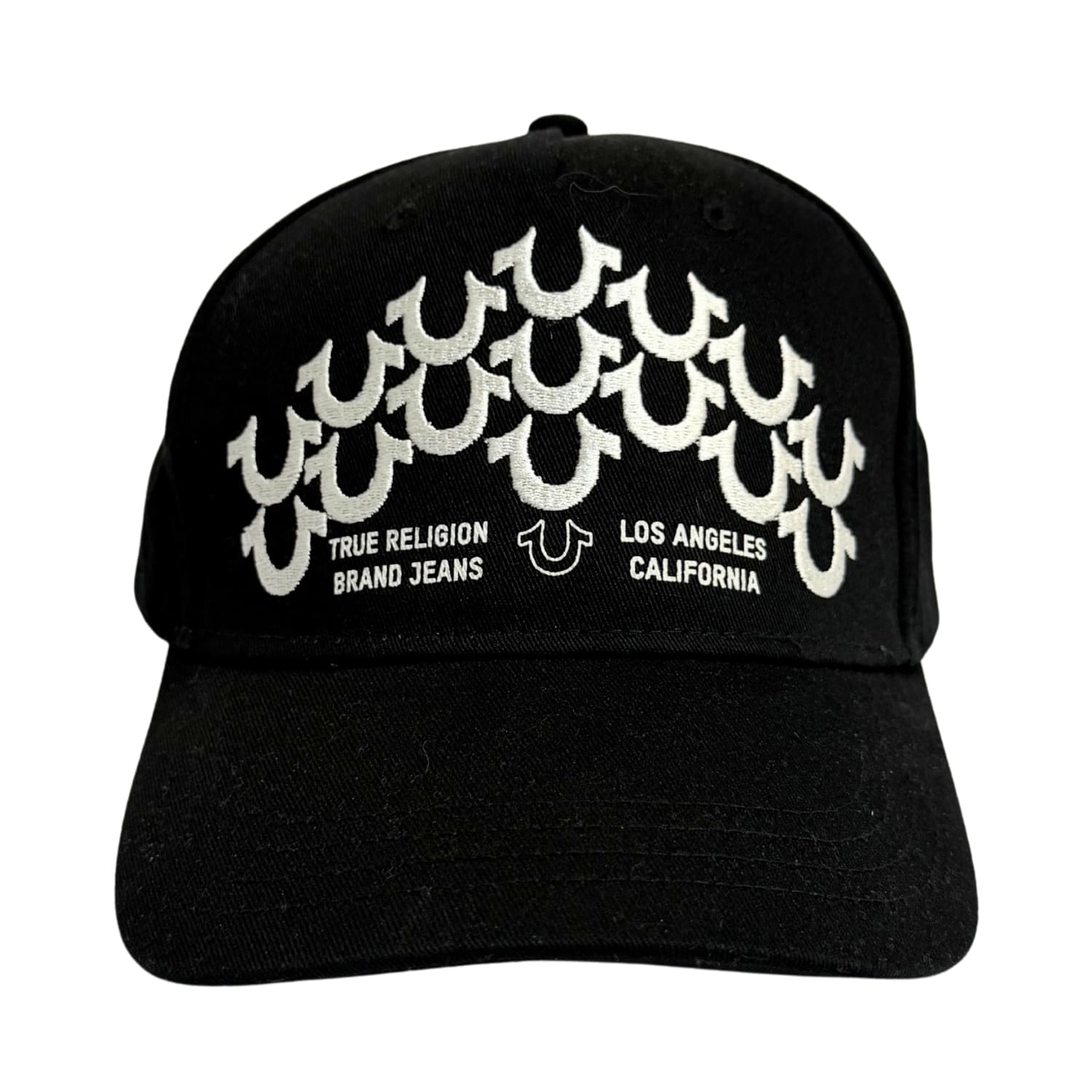 Gorro True Religion negro con diseño multilogo en blanco, de estilo urbano y moderno que destaca por su contraste llamativo. Cómodo y con ajuste práctico, es ideal para el uso diario, aportando un toque de personalidad y autenticidad a cualquier outfit casual o streetwear.