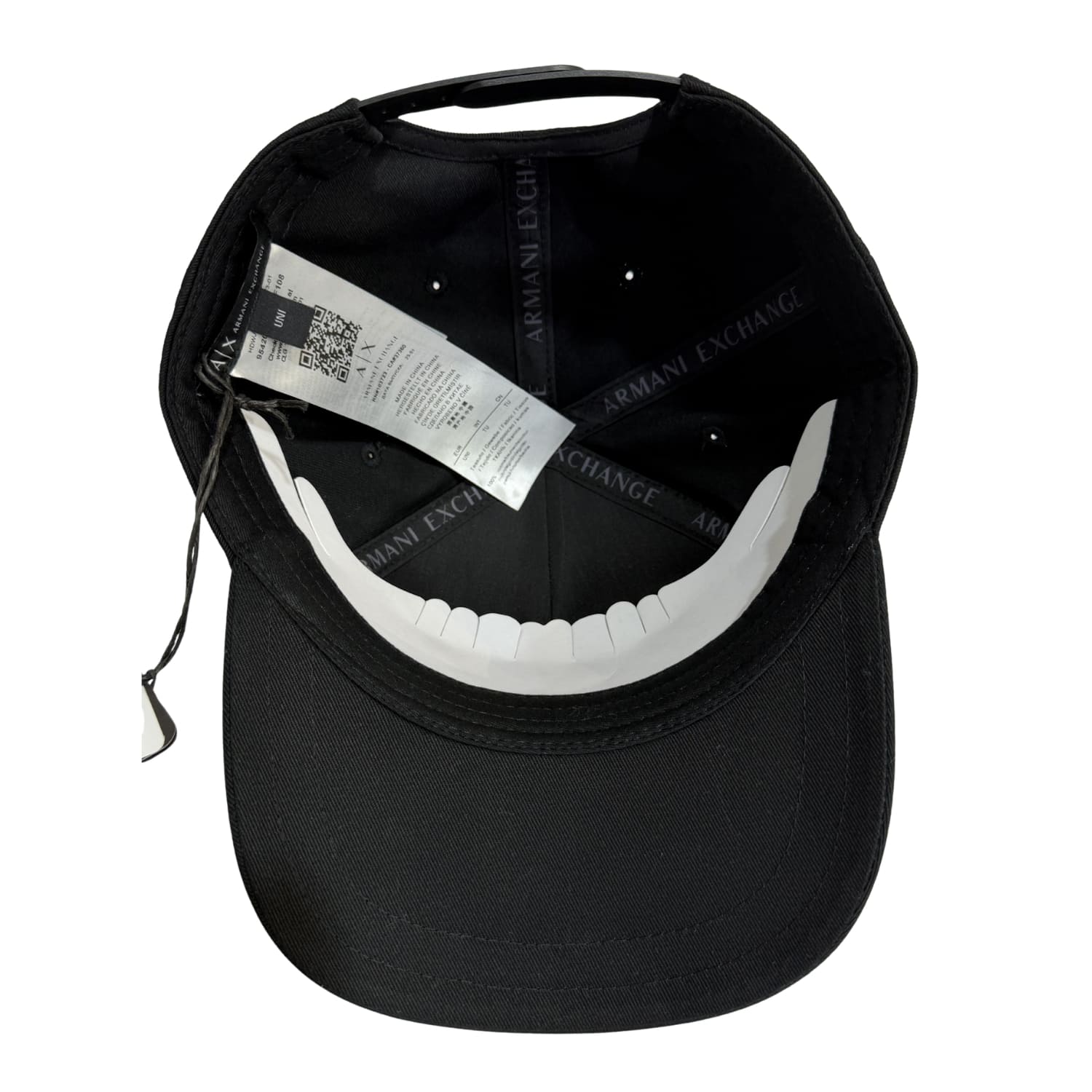 Gorro negro Armani con logo en gamuza, elegante y cómodo, ideal para un look casual con estilo premium y distintivo.